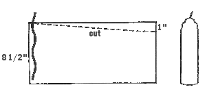 One inch cut part becomes scrap wax. Place wick as shown and roll. Gives top of